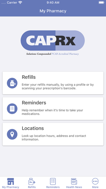 O aplicativo CAP RX, INC oferece uma plataforma segura para comunicação entre usuários e farmácias locais, facilitando a gestão de prescrições. Com funcionalidades como reabastecimento de medicamentos com um toque e lembretes de reposição, o app visa aumentar a conveniência no cuidado com a saúde. Além disso, fornece acesso a descontos em medicamentos de marca e informações detalhadas sobre condições e medicamentos, escritas por farmacêuticos.